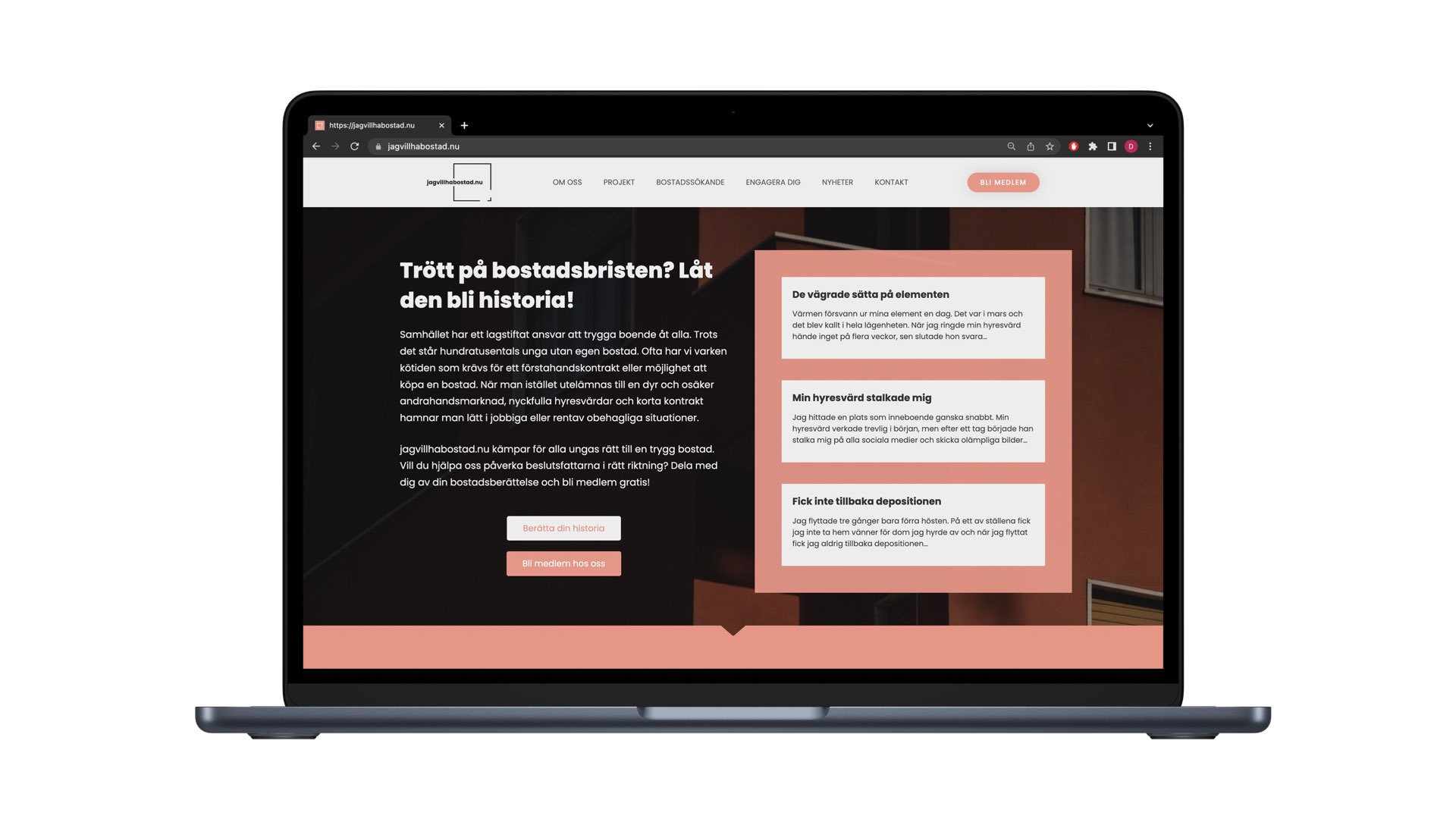 2022 års kund i reklamtävlingen 48h var jagvillhabostad.nu. Deras mål var att få 600 nya medlemmar. Vi använde våra egna erfarenheter av bostadsbrist för att locka andra att berätta om sina. Det ledde till pris för bästa copy och en skarp webkampanj.